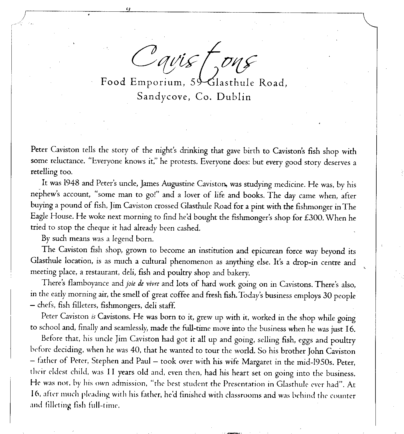 With the assistance of our trained, specialist staff, Cavistons is also a major supplier of quality food to many of Dublin’s leading restaurants and hotels. and with a thriving export business, particularly of smoked salmon, the company continues to go from strength to strength.